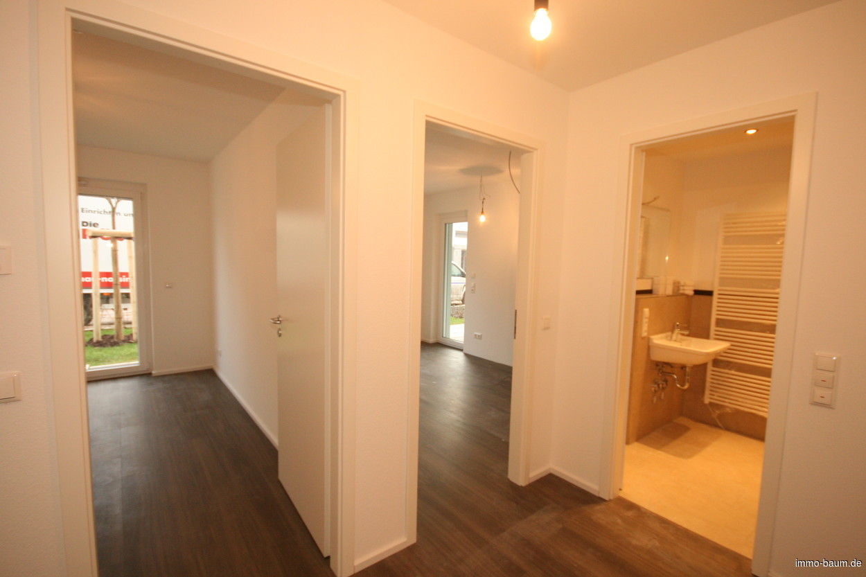 Diese noch zu erstellende zwei Zimmer Wohnung wird südlich des Kulturforums der Südoststadt angrenzend an das Naturschutzgebiet "Offenburger Vorbergzone" erstellt. Die Offenburger Innenstadt ist nur 2.200 Meter von der Wohnung entfernt. Dort finden sich alle Einkaufsmöglichkeiten, Ärzte, Apotheken sowie eine gute Anbindung an das ICE-Netz der Deutschen Bundesbahn. In unmittelbarer Nähe befindet sich auch eine Bushaltestelle. Das Gebäude mit gradliniger Architektur und großen Fensterflächen, bringen viel Licht in die Wohnung. Der von einem Landschaftsarchitekten gestaltete großzügige Innenhof, der gemeinschaftlich genutzt werden kann, sorgt für eine behagliche Atmosphäre. Der zur Wohnung gehörende Privatgarten lädt zum Verweilen ein. Das Zehnfamilienhaus verfügt über einen Aufzug, mit dem man bequem und barrierefrei von der Tiefgarage in die Wohngeschosse gelangt. Zur Wohnung gehört ein Tiefgaragenstellplatz, der zusätzlich € 19.800 kostet. Die Wohnung wird mit hochwertigen Markenprodukten wie Duravit im Sanitärbereich und mit Villeroy & Boch Fliesen (30 x 30 oder 30 x 60) ausgestattet. Die Wohn- und Schlafräume werden mit Zweischicht-Stabparkett (Eiche Natur), Fußbodenheizung, elektrischen Rollläden, Handtuchheizkörper im Bad und vielem mehr ausgestattet. Im Kaufpreis enthalten, ist eine neue Einbauküche. Das Haus wird als Energieeffizienzhaus 55 erstellt und mit einer Holzpelletsanlage beheizt. Eine ideale Stadtwohnung. Vereinbaren Sie einen Besichtigungstermin und lassen sich von der Lage und Ausstattung überzeugen.