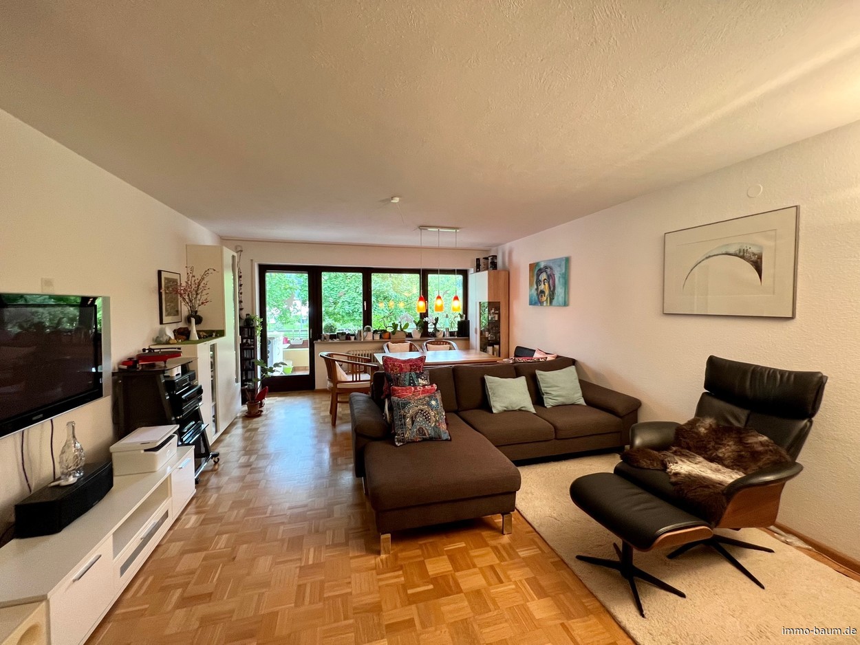 Bei der angebotenen Immobilie handelt es sich um eine großzügige vier Zimmer Wohnung mit zwei Balkonen und zwei Tiefgaragenplätzen in der schönen Dreisamtalgemeinde Kirchzarten. Die Wohnung befindet sich im ersten Obergeschoss in ruhiger Lage in der Nähe zum Ortszentrum von Kirchzarten. Von dem großen überdachten Südbalkon hat man einen herrlichen Ausblick in die Natur. Das im Jahr 1978 erstellte Gebäude hat insgesamt 10 Einheiten, davon ist eine im Untergeschoss eine Gewerbeeinheit/Praxis mit eigenem Zugang. Zur Wohnung gehört ein Kellerabteil und zwei Tiefgaragenplätze, die zusätzlich zusammen 30.000,-- Euro kosten. Im Keller ist ein Wasch- und Trockenraum mit Platz für eine Waschmaschine. Vor dem Haus befinden sich gemeinschaftliche Fahrradabstellplätze. Die Wohnung hat insgesamt ca. 111 m² und ist mit Parkett, Fliesen und in der Küche mit PVC belegt. Das Bad ist mit einer Badewanne, Dusche, Fenster und zwei Waschbecken ausgestattet. Im Flur im Eingangsbereich der Wohnung befindet sich ein Gäste-WC. Das Esszimmer mit ca. 17 m² und kleinem Balkon und das Wohnzimmer mit ca. 26 m² sind direkt mit einer zweiflügeligen Tür verbunden. Der große überdachte Südbalkon mit ca. 16 m² ist sowohl vom Wohnzimmer als auch vom Schlafzimmer begehbar. Gerne stehen wir Ihnen für weitere Fragen oder für eine Besichtigung zur Verfügung. Wir freuen uns über Ihre Kontaktaufnahme.Umgebung: Kirchzarten
