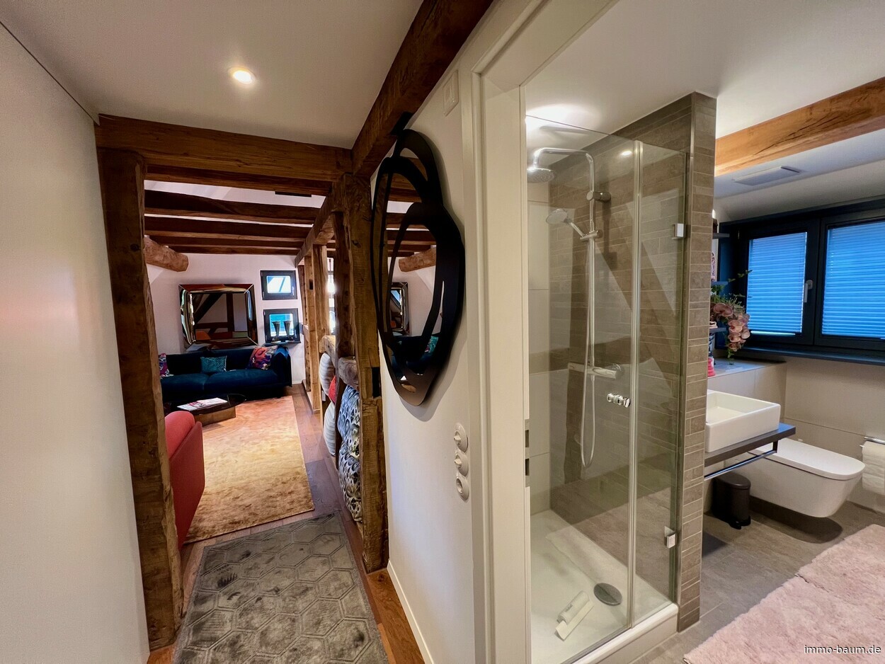 Diese stilvolle 2-Zimmer-Wohnung mit einer Wohnfläche von ca. 52 m² befindet sich in einem liebevoll restaurierten, denkmalgeschützten Fachwerkhaus in der malerischen Gemeinde Vörstetten. Das Gebäude wurde im Jahr 2016/17 einer umfassenden Komplettsanierung unterzogen und verbindet geschickt den Charme des historischen Fachwerks mit modernen Annehmlichkeiten und hochwertiger Ausstattung. Die Wohnung überzeugt durch eine durchdachte Raumaufteilung und viel Liebe zum Detail. Beim Betreten der Wohnung wird sofort die hochwertige Ausstattung und die sorgfältige Sanierung sichtbar. Die Böden in allen Wohnräumen sind mit edlen Dielen ausgelegt, die eine warme und einladende Atmosphäre schaffen. In sämtlichen Zimmern wurden moderne Spots an den sichtbaren Dachbalken installiert, die für eine angenehme und zeitgemäße Beleuchtung sorgen. Das Badezimmer verfügt über eine Dusche mit einer eleganten Echtglasduschabtrennung. Der Handtuchheizkörper sorgt nicht nur für behagliche Wärme, sondern auch für eine praktische Nutzung. Das Badezimmer kombiniert Funktionalität und Stil in einem modernen Design. Die hochwertige Einbauküche ist mit allen modernen Annehmlichkeiten ausgestattet und bietet ausreichend Platz für die Zubereitung von kulinarischen Köstlichkeiten. Die Küche fügt sich perfekt in das Gesamtbild der Wohnung ein und stellt ein weiteres Highlight dar. Der von außen zugängliche Kellerraum, bietet zusätzlichen Stauraum zur praktischen Aufbewahrung von Haushaltsgegenständen. Die Beheizung des Gebäudes erfolgt über eine Gaszentralheizung, die für eine angenehme Wärme sorgt. Da das Haus unter Denkmalschutz steht, greift die Energieausweis-Pflicht gemäß § 79 Absatz 4 GEG nicht. Diese exquisite 2-Zimmer-Wohnung im denkmalgeschützten Fachwerkhaus in Vörstetten vereint historisches Flair mit modernen Annehmlichkeiten und hochwertiger Ausstattung. Mit ihrem großzügigen Raumangebot, der edlen Ausstattung ist sie der ideale Ort für Menschen, die das Besondere suchen und Wert auf eine hohe Lebensqualität legen. Wenn Sie in einem einzigartigen Ambiente wohnen möchten, ist diese Wohnung die perfekte Wahl.Vörstetten ist eine idyllisch gelegene Gemeinde im Breisgau, ca. neun Kilometer nordwestlich von Freiburg im Breisgau entfernt. Die Ortschaft bietet eine ruhige, naturnahe Lage und ist ideal für Naturliebhaber und Pendler, die gleichzeitig eine gute Anbindung an Freiburg und das Umland suchen. Die Verkehrsanbindung über die A5 sorgt für schnelle Erreichbarkeit der Städte und die Region. In Vörstetten finden sich wichtige Infrastruktureinrichtungen wie Supermärkte, Ärzte und Schulen, während Freizeitmöglichkeiten in der Umgebung, wie Wanderungen durch die Weinberge und den Schwarzwald, zur Erholung einladen.